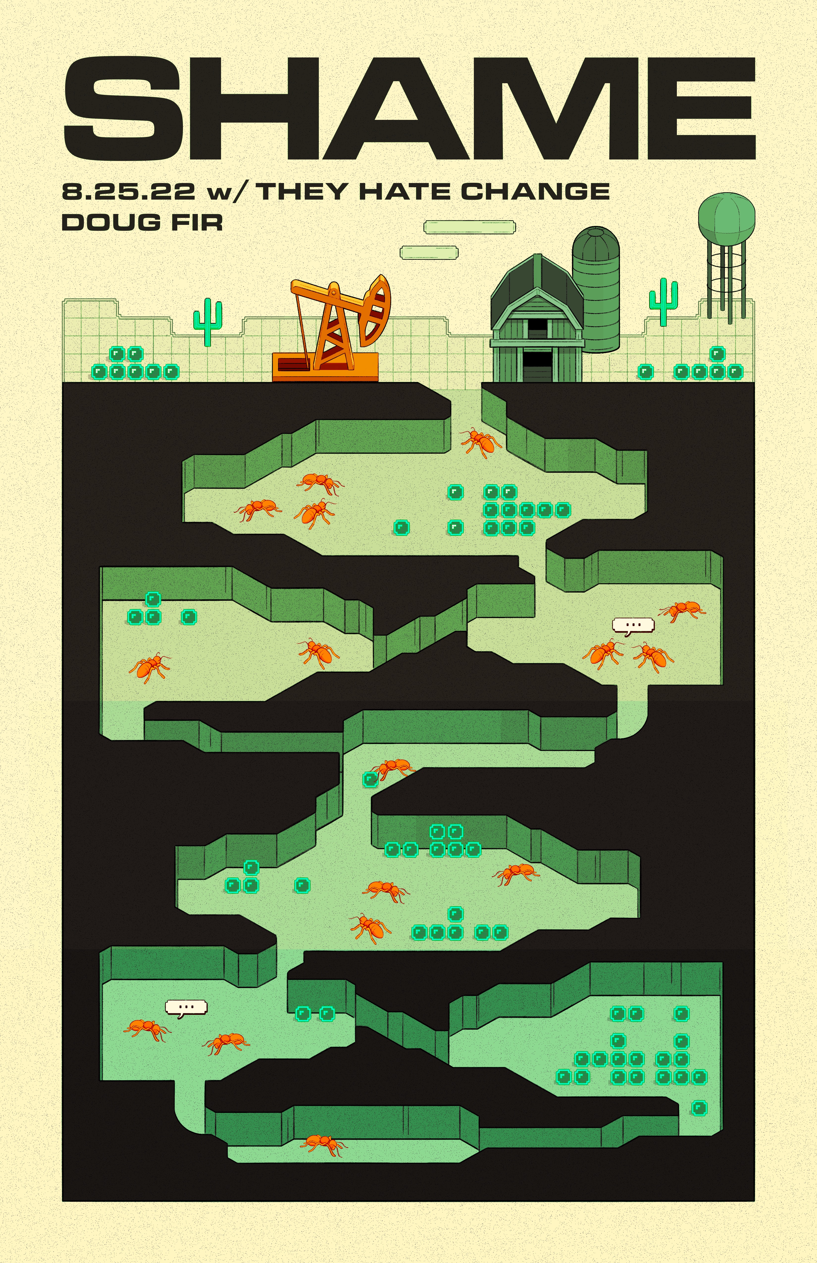 Poster design for Shame’s 2022 show at Doug Fir Lounge.